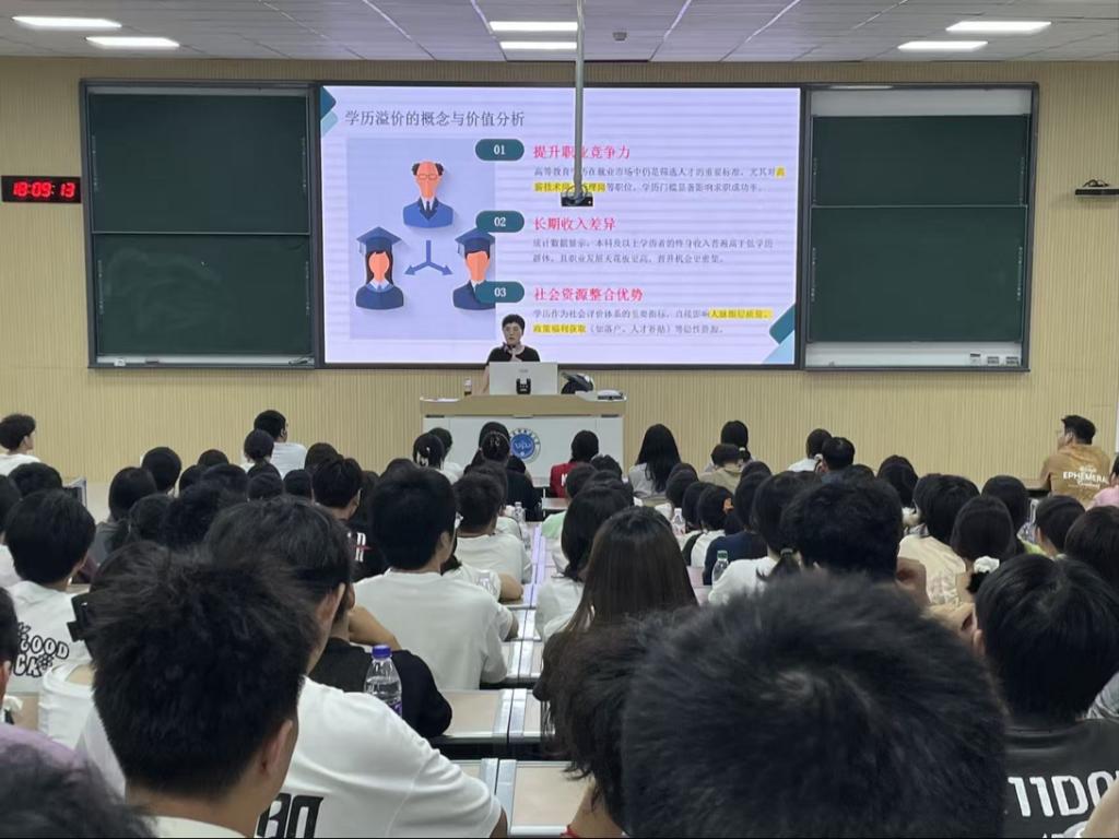 副书记吴锦以《别让大学白上——从选课到毕业,用系统化布局把学历溢价最大化》为题,为新生提供了全周期学业规划指导。从课程选择、学分修读到毕业要求、学位授予,她建议新生树立“目标导向”思维,将大学学习与个人长远发展紧密结合,最大化地实现学历的价值提升。