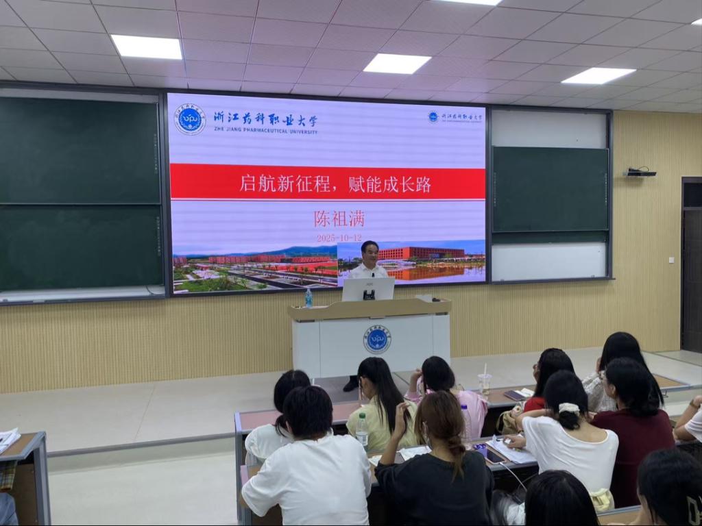学院院长陈祖满以《启航新征程,赋能成长路》为题,引导同学们“扣好人生第一粒扣子”。他首先回顾了学校的发展历程与办学成就,指出学院作为食药类高素质应用型人才培养的摇篮,始终以服务国家战略和行业发展为己任。随后,他从学科建设、师资力量、科研平台及就业前景等方面,系统介绍了学院的整体情况。陈院长还分享了优秀校友的成长故事,深入剖析了新时代食品专业人才面临的职业机遇与挑战。他寄语新生尽快转变学习方式,掌握自主学习、体验学习、合作学习与交流学习的能力,为未来成长奠定坚实基础。