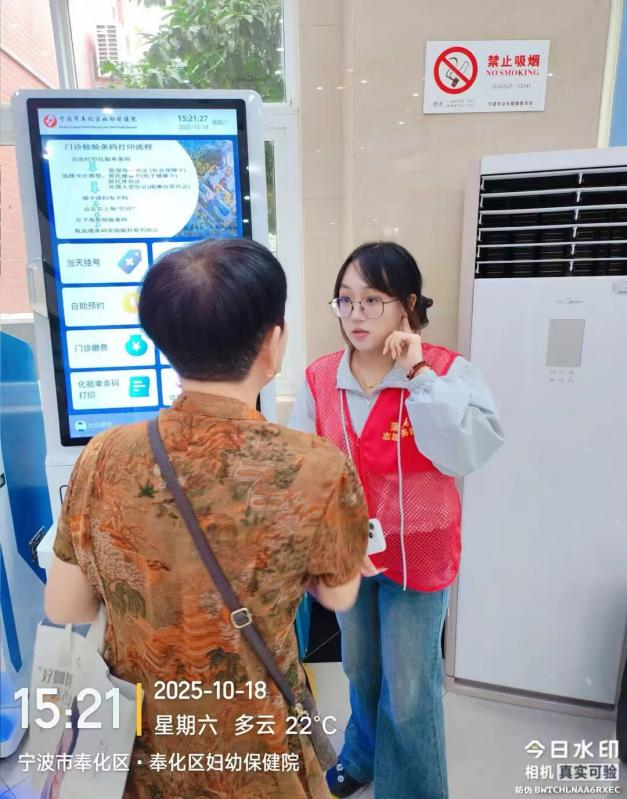 在医院门诊大厅,志愿者们身着统一马甲,化身“智能导诊员”。他们熟练操作自动挂号机,耐心指导患者完成挂号、缴费、打印报告等流程。有时,他们还化身“控烟大使”进行控烟宣传,或是贴心地为患者指路、引导。